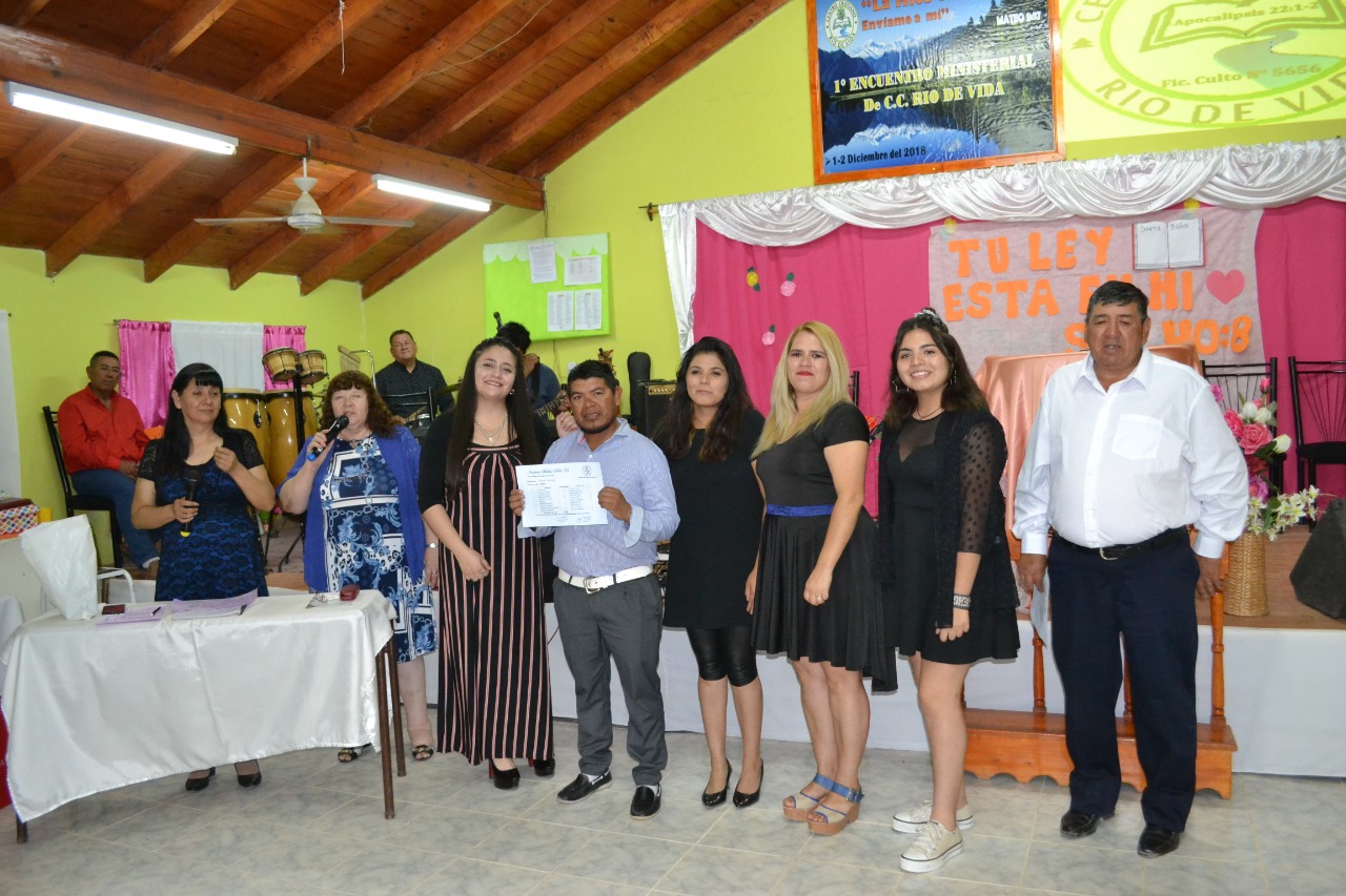 El viernes 13/12 se hizo el cierre del Instituto Biblico Bet-el del Centro Cristiano Rio de Vida, Centenario. Se realizó una reunión especial de entrega de boletines; y diploma para nuestra egresada 2019: Soledad Infante, con la ayuda de Dios pudo terminer los 3 años de Instituto de nuestra Iglesia. Hubo una palabra de aliento para llevar a la congregación a poder Estudiar, y escudriañar la poderosa Palabra de Dios, traida por la pastora Estela Burgos. Felicitamos a los alumnos de 1° y 3° año por terminar una año en victoria (Blanca Alvarez, Maria RIos, Angeles Urra, Gilmar Marupa, Maria Andacaba, Estela Andres, Tabita Andres y David Infante). Luego se estuvo compartiendo junto con los alumnos y profesores para culminar este año!!!