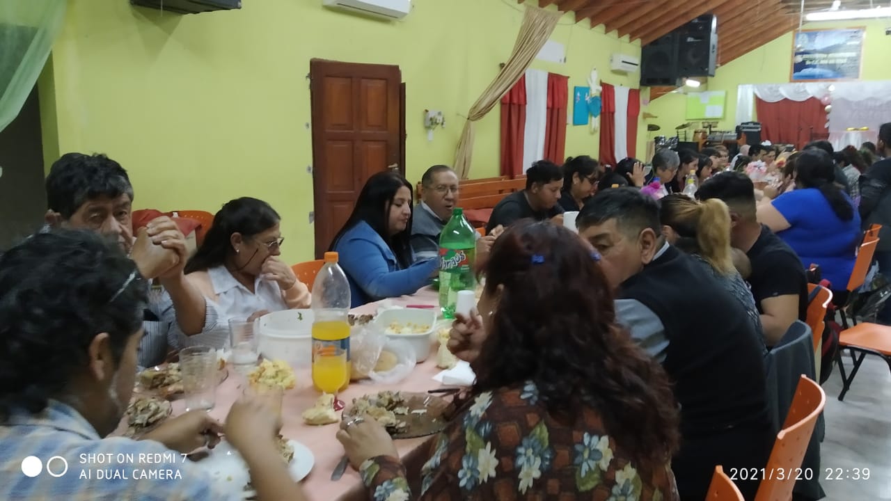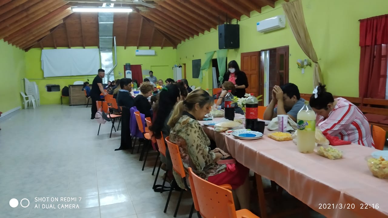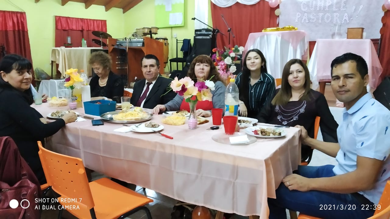 El dia de ayer sabado 20-02, se hizo una fiesta sorpresa a nuestra pastora Celia por su cumpleaños. Muy sorprendida y contenta le cantamos el cumpleaños una vez que llego al templo, a mitad de nuestra reunion de los sabados. Luego del culto, se estuvo festejando y compartiendo todos los hijos espirituales junto a ella. A diferencia del año pasado, que no podiamos reunirnos en este fecha, tuvimos la oportunidad de agasajarla en su dia.
