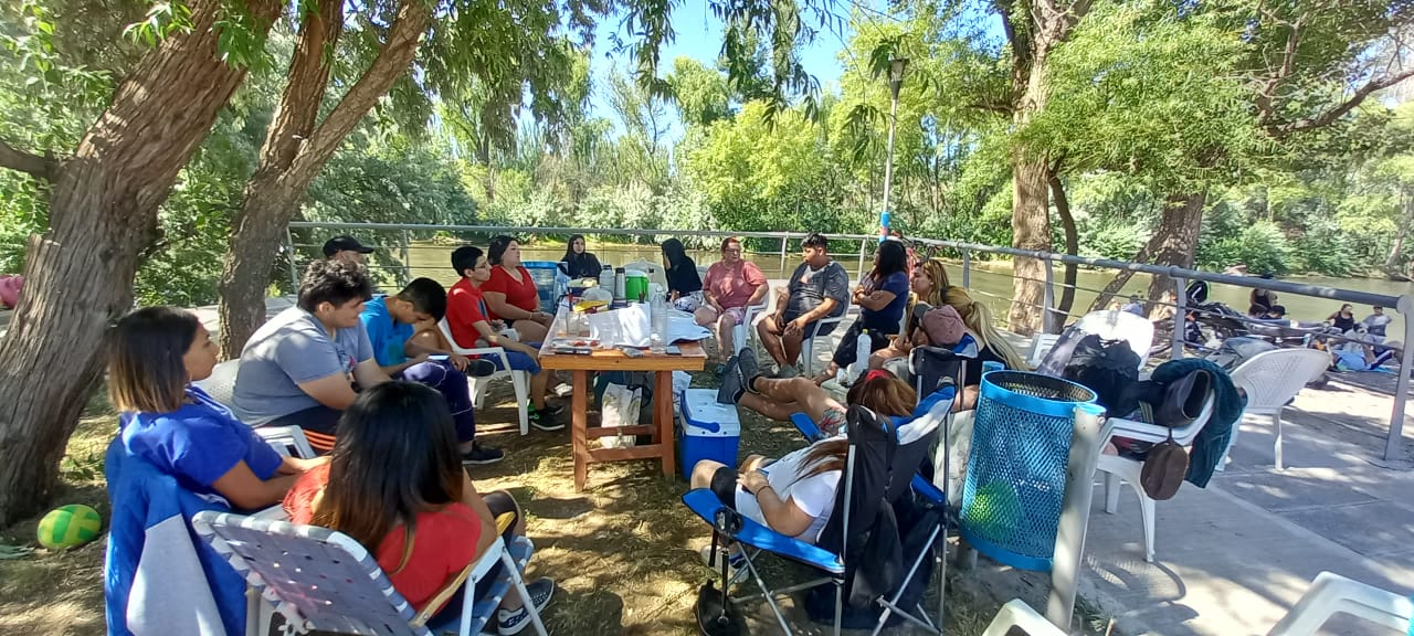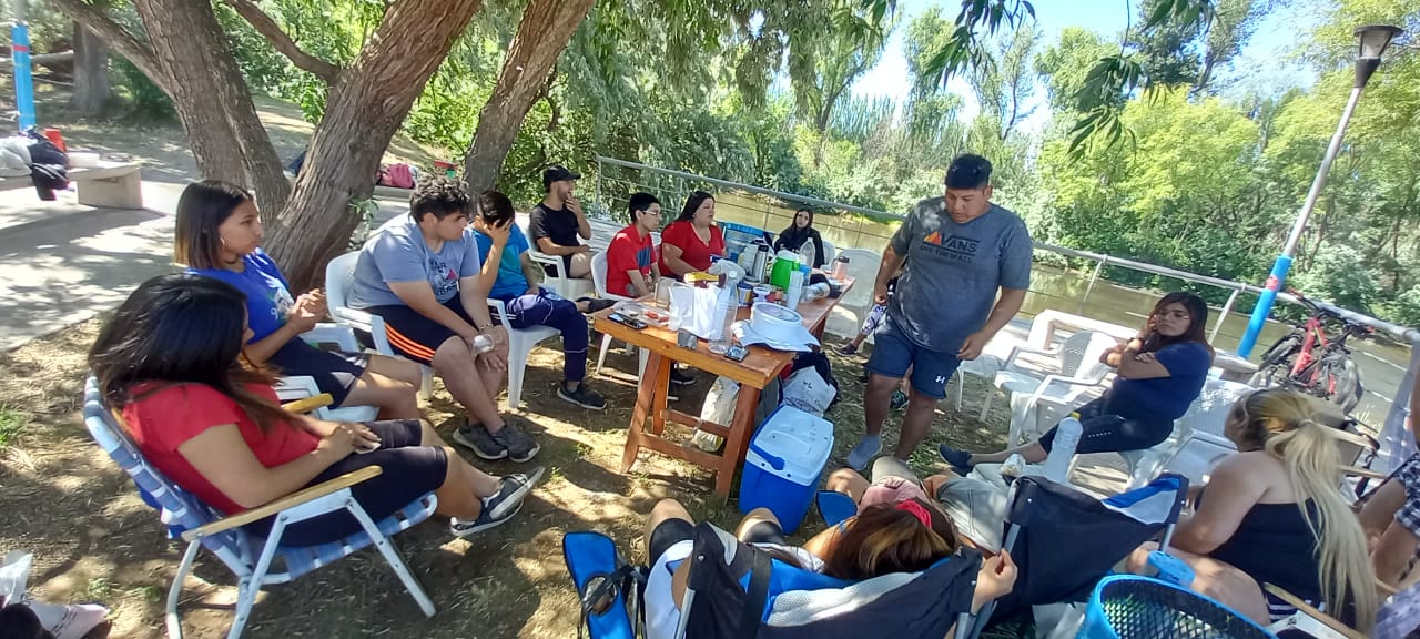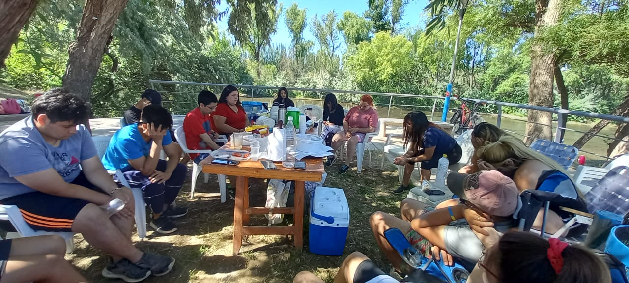 Se disfrutó un hermoso día en el Balneario Municipal de Centenario, allí compartieron el desayuno, el almuerzo, estuvieron jugando al voley, charlando y riendo. Luego pasaron a recibir una enseñanza por parte de Mica y Andrés donde se habló del temperamento y el carácter de una persona, y como Dios puede llegar a moldearnos para ser mejores hermanos en Cristo.