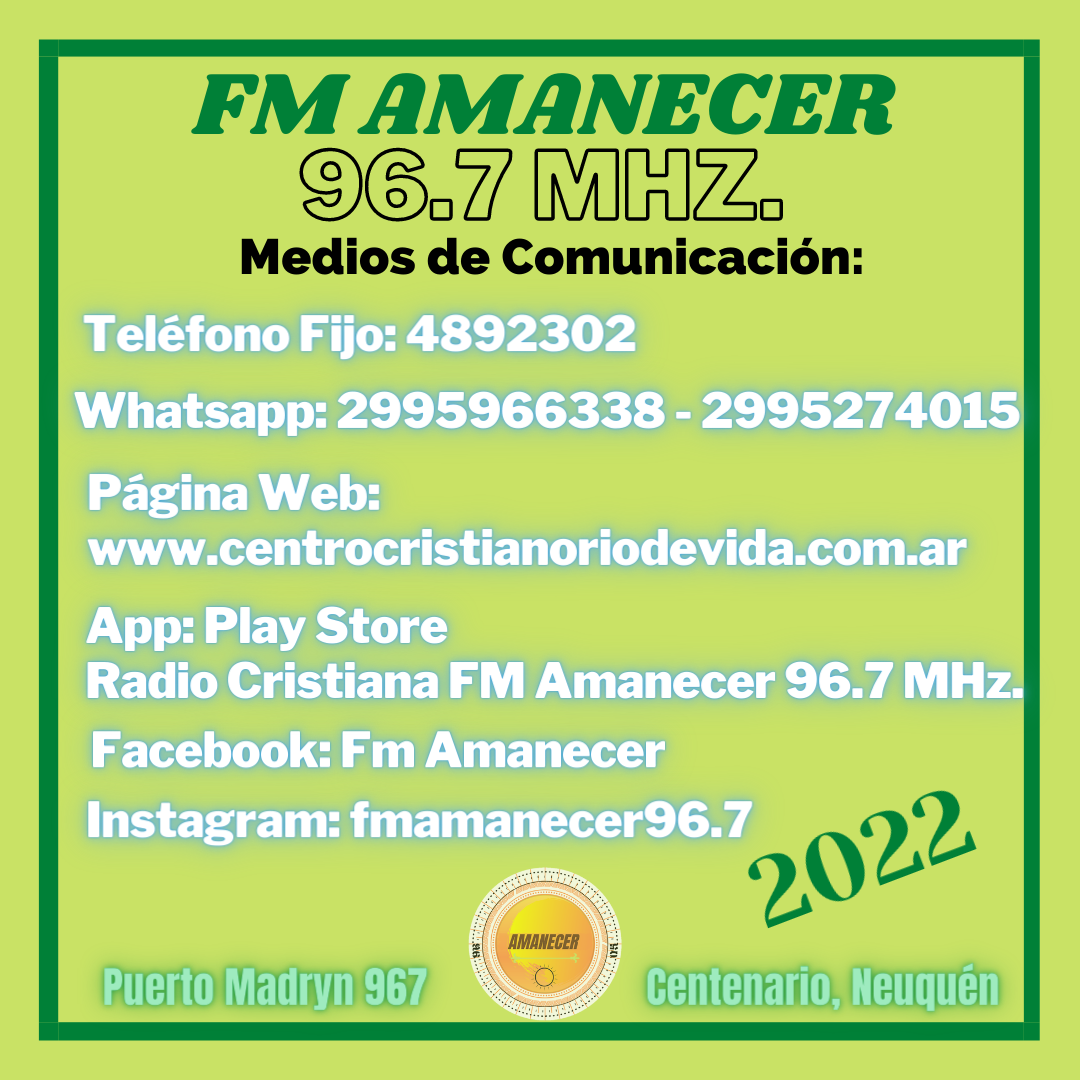 Bendiciones a todos los programadores y a la audiencia de la 96.7 "Fm Amanecer", comenzando en este año 2022 acompañándote con nuestra emisora. Esperamos ser de bendición y edificación a todos aquellos que nos escuchan.